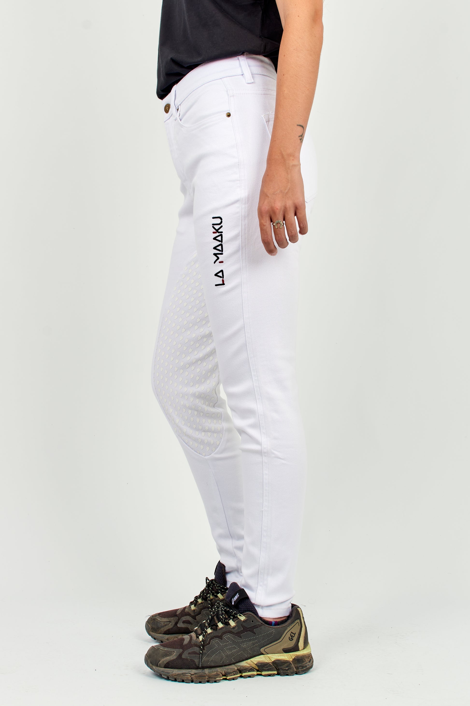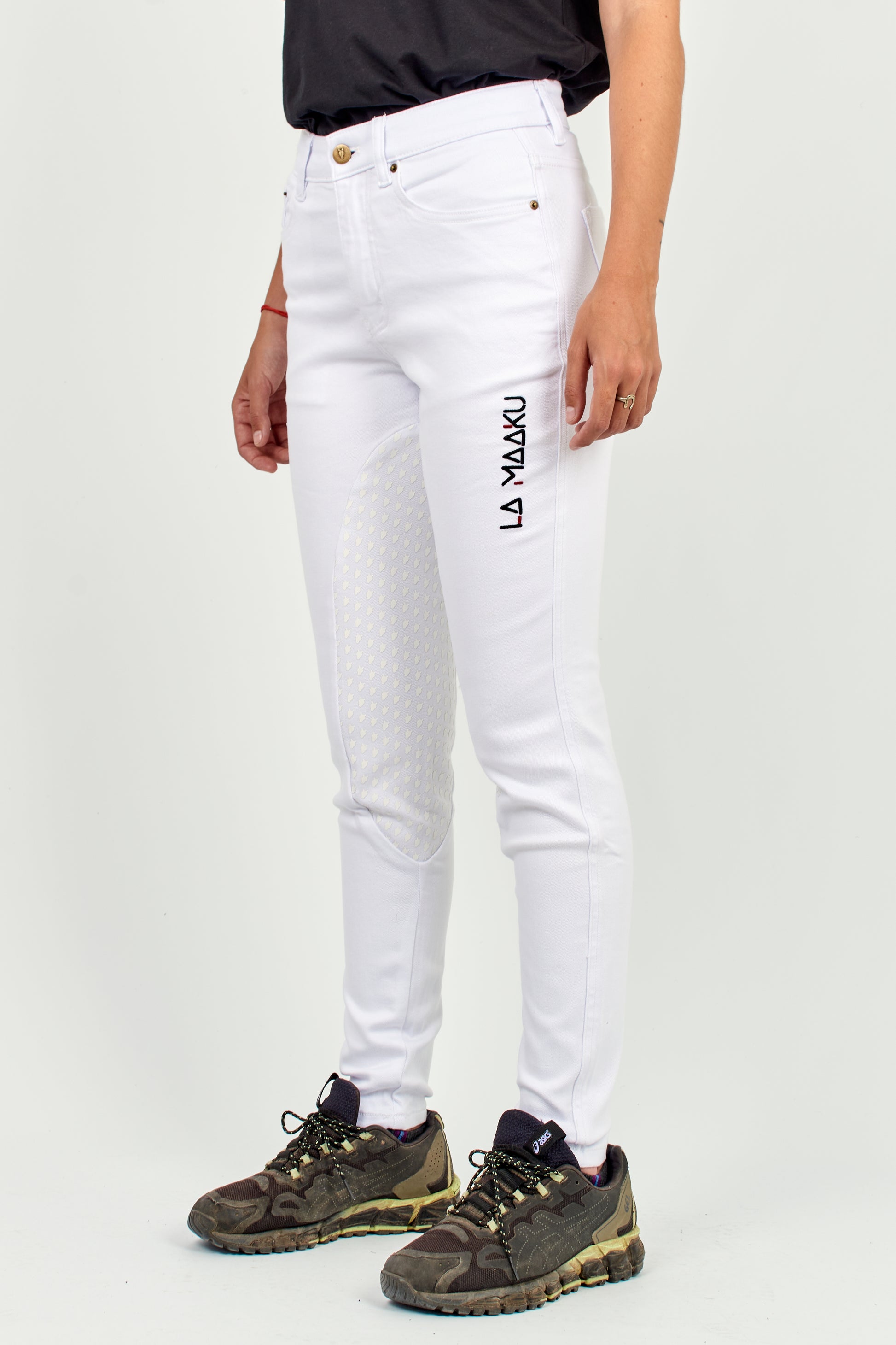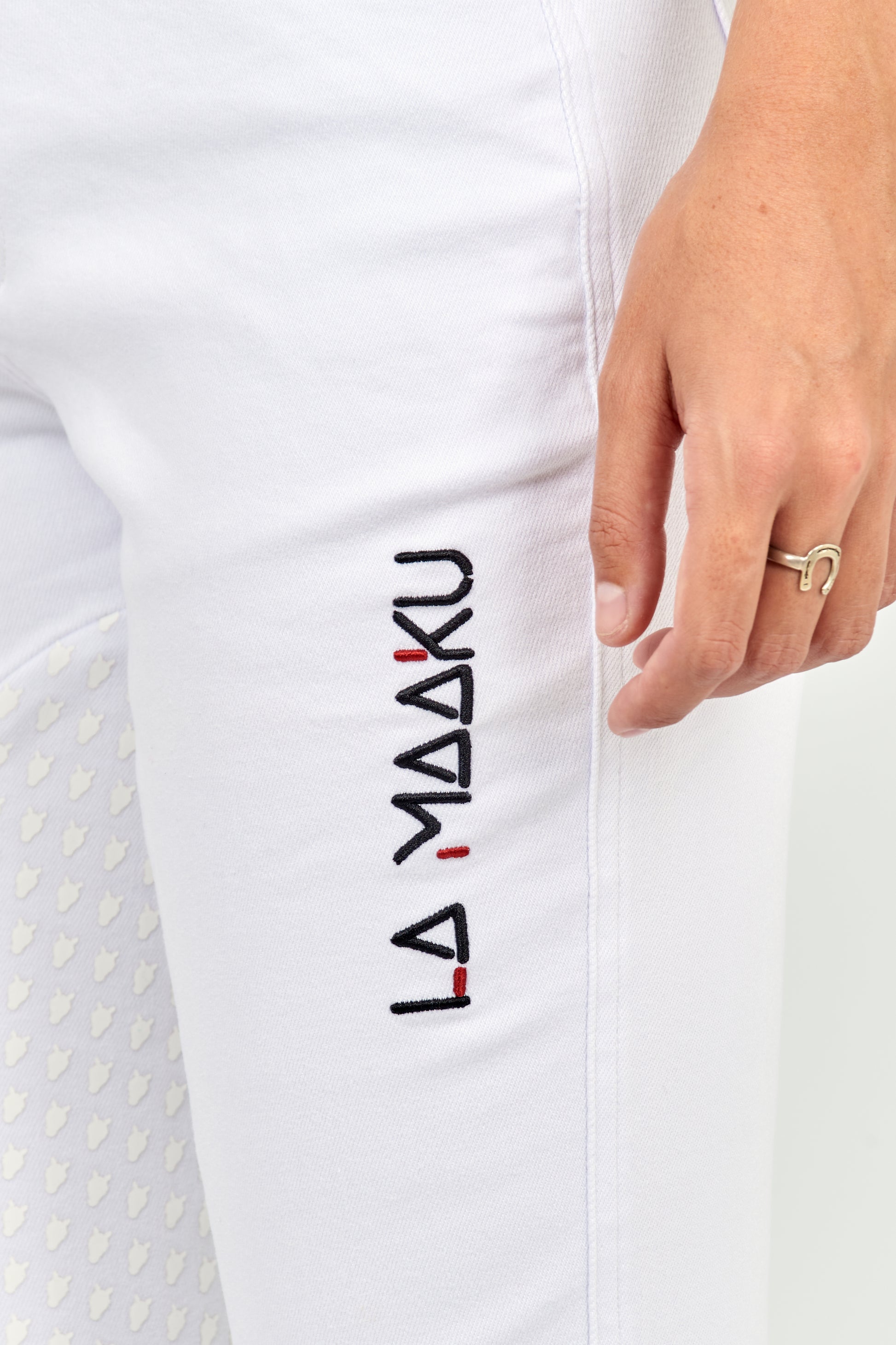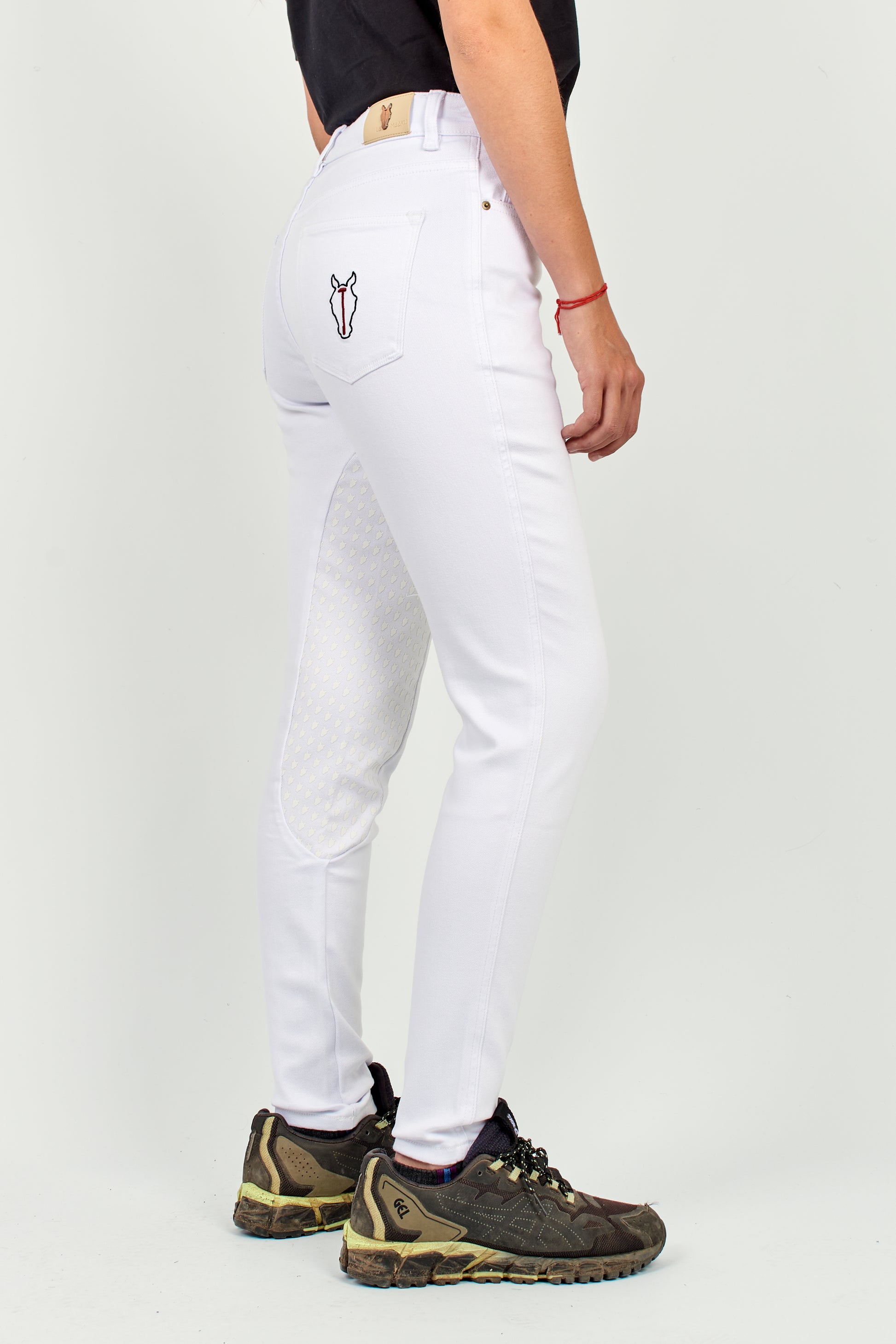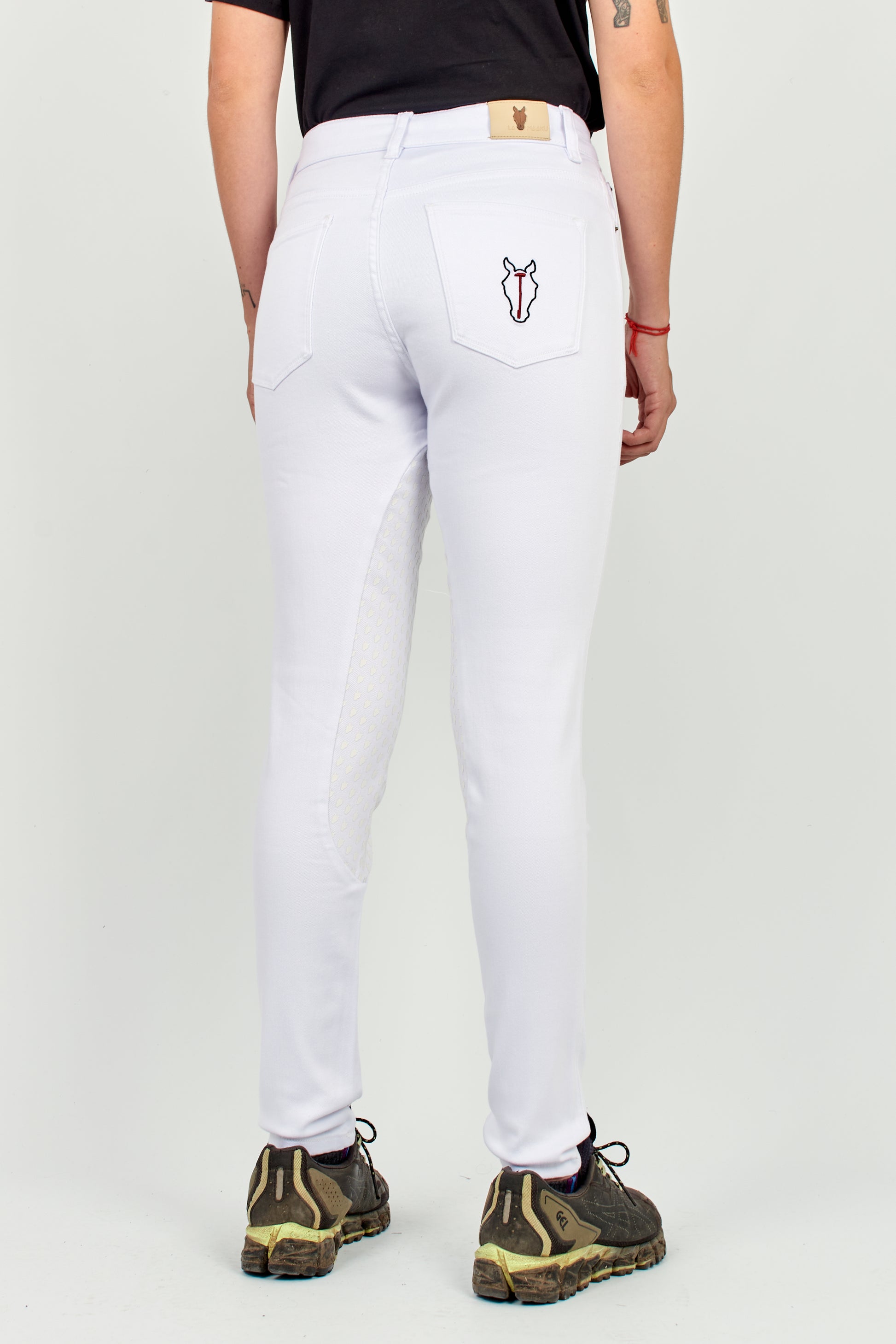 Designed for women who live polo with intensity and style, the Woman White Tournament Pants are the embodiment of functional elegance. Crafted from a premium blend of cotton, polyester, and elastane, they offer the perfect balance of softness, durability, and stretch. Their mid-to-high rise waistline enhances the silhouette while ensuring excellent support without restricting movement. An inner grip at the inseam provides secure positioning while riding, and the adjustable drawstring waist allows for a custom fit that ensures greater comfort and stability. Ideal for tournaments and demanding training, this model blends performance and distinction, making it a wardrobe essential.